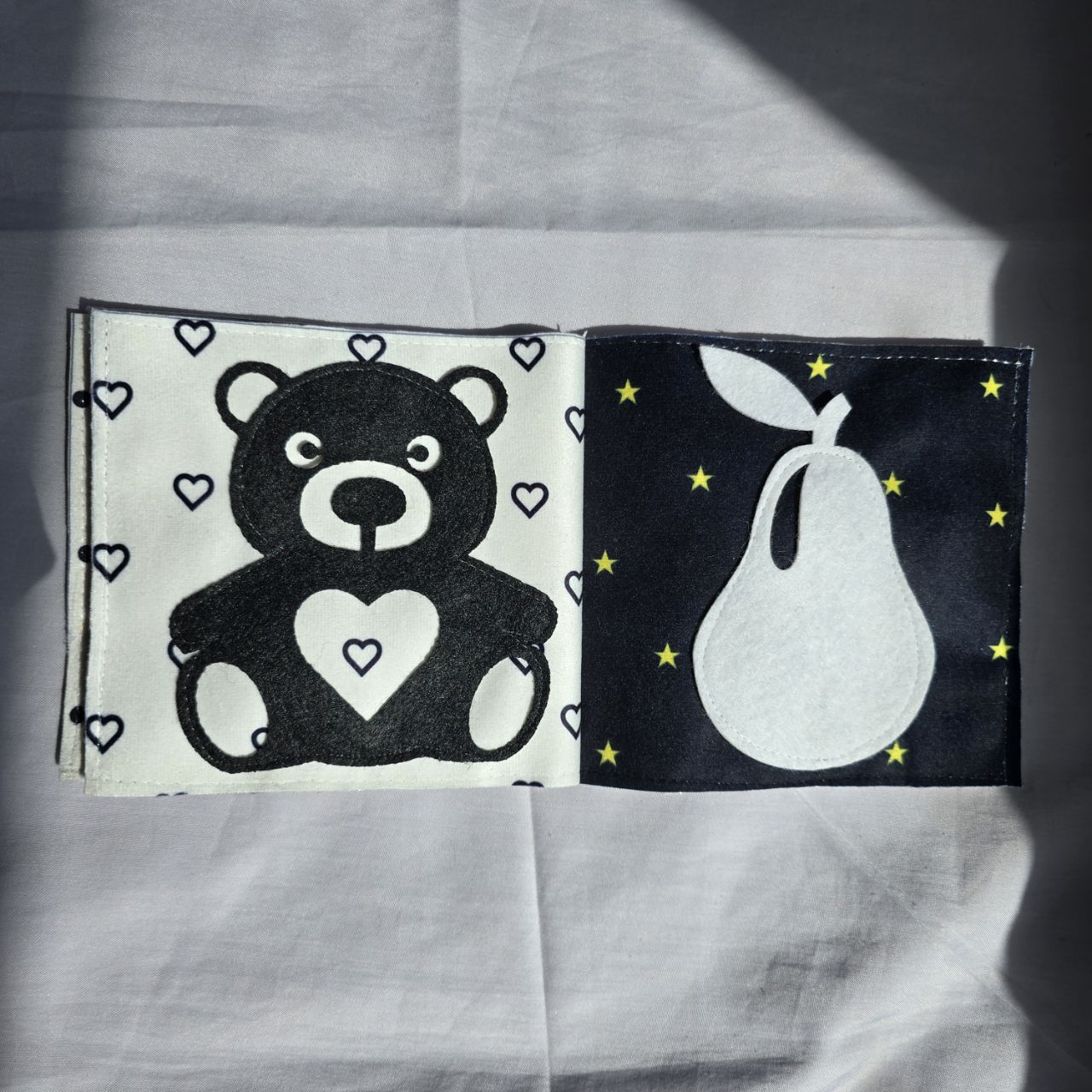 متاسفانه این کالا در حال حاضر موجود نیست. میتوانید از طریق لیست بالای صفحه، از محصولات مشابه این کالا دیدن نمایید.کتاب پارچه ای ، تولید شده از مخمل ضد حساسیت ، دارای تنوع متریال ، تنوع بافت برای تقویت حس لامسه نوزاد ، جغجغه ای ، دارای صفحات سوت دار و صفحات خش خشی