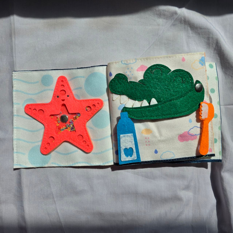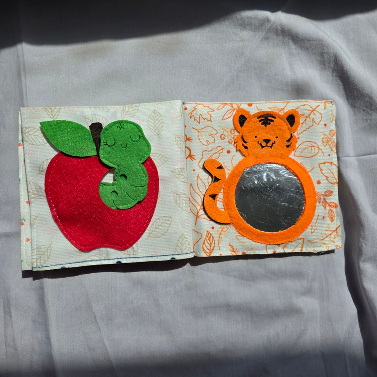 کتاب پارچه ای ، تولید شده از مخمل ضد حساسیت ، دارای تنوع متریال ، تنوع بافت برای تقویت حس لامسه نوزاد ، جغجغه ای ، دارای صفحات سوت دار و صفحات خش خشی